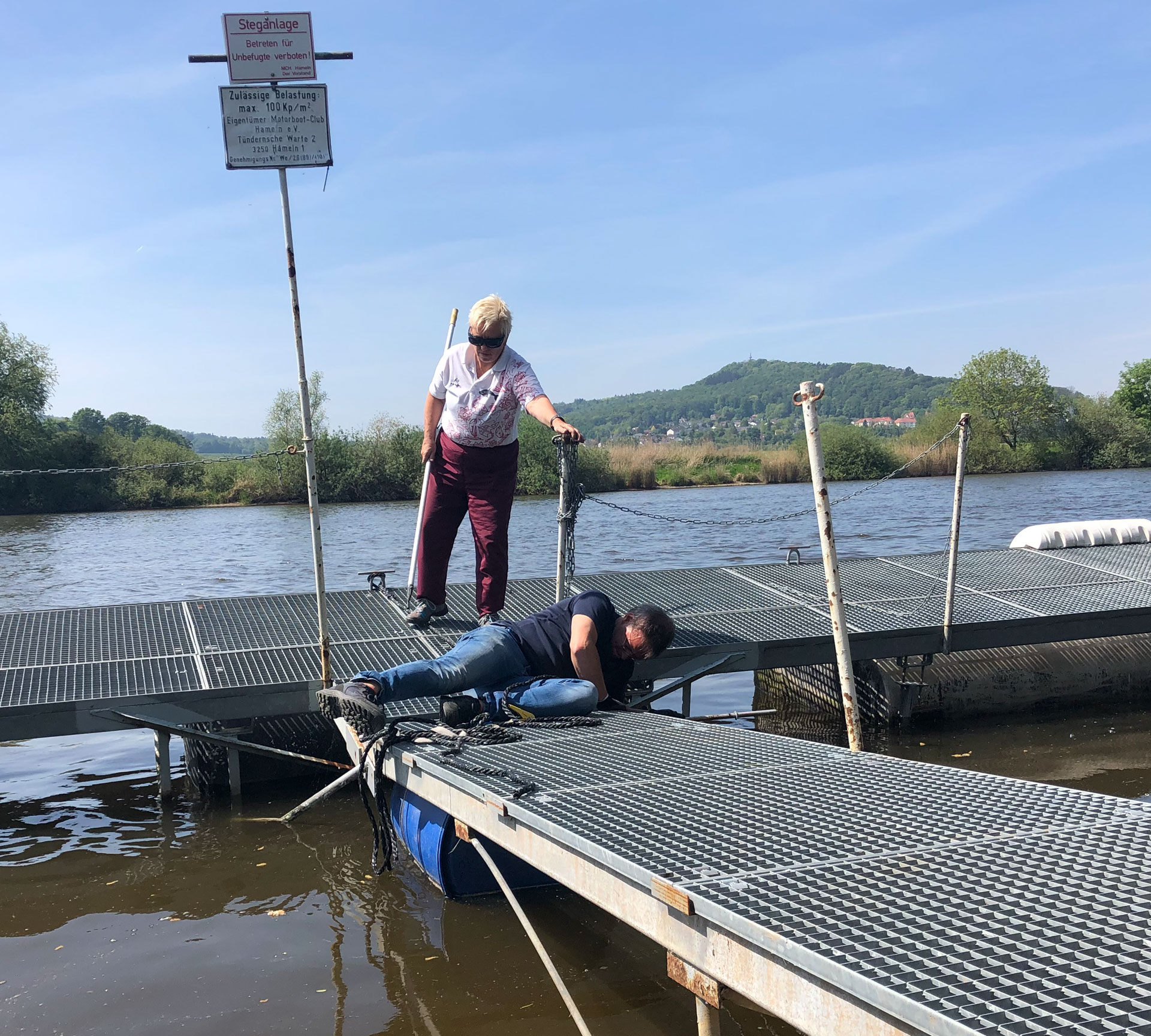 (RA-St.) … ist in Corona-Zeiten eine echte Herausforderung. Doch der Sicherheitsabstand konnte stets gewahrt werden. Es wurden zudem, neben anderen Vorsichtsmaßnahmen, auch Haushalts-Teams zusammengestellt. Dank der tatkräftigen Initiative von Axel und Julia Hartmann, Sabine und Matthias Gaudlitz, Anne und Harald Röger, Christoph Rieper und Matthias Albrecht konnten unsere Clubstege noch rechtzeitig* vor dem Saisonstart montiert werden.