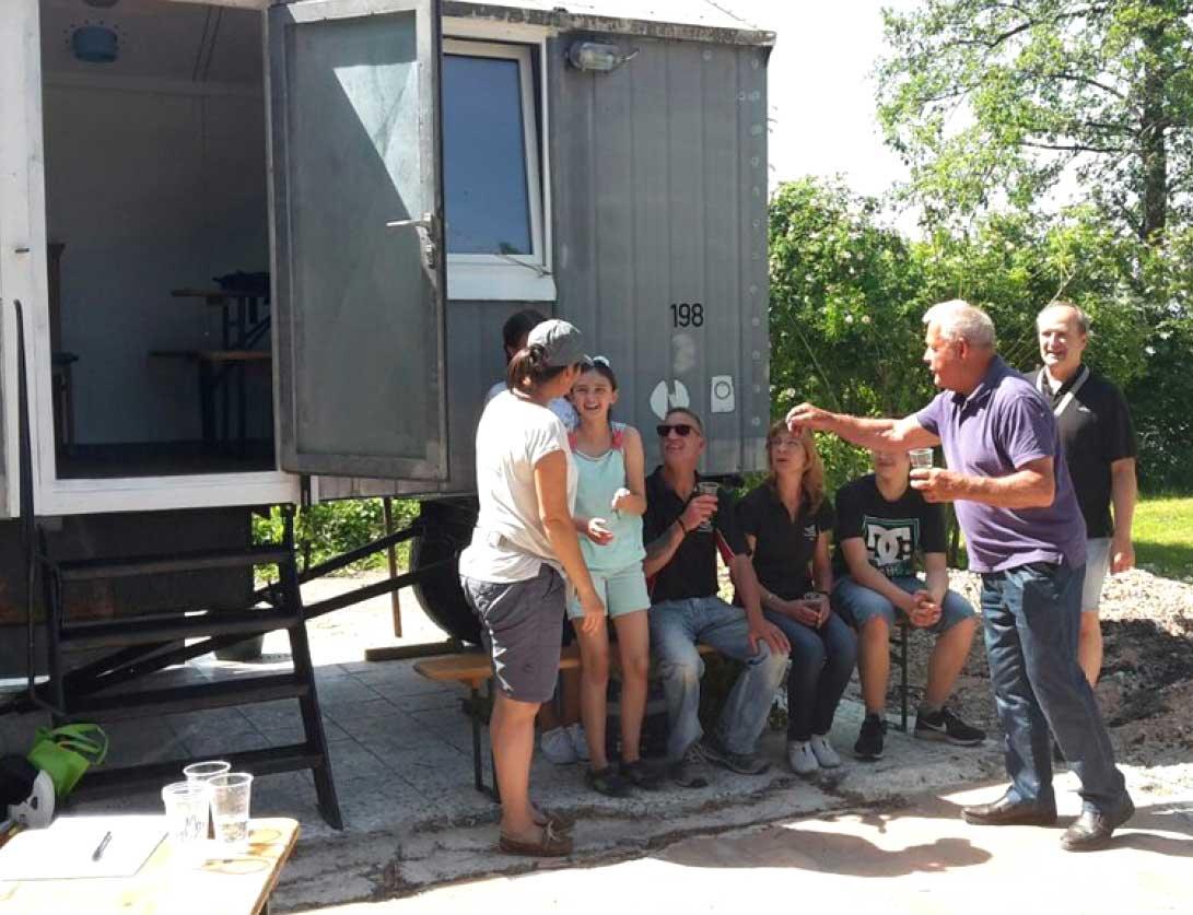 Nach dem Rennen wurde noch das neue Jugendheim eingeweiht. Dabei bedankte sich die Jugend für die Mühen, die Hafenmeister Rudi Ruschmeier auf sich genommen hatte, um den Bauwagen zu besorgen und herzurichten. Zum Ausklang gab es Gegrilltes und zum Abschluss ein Federballspiel.