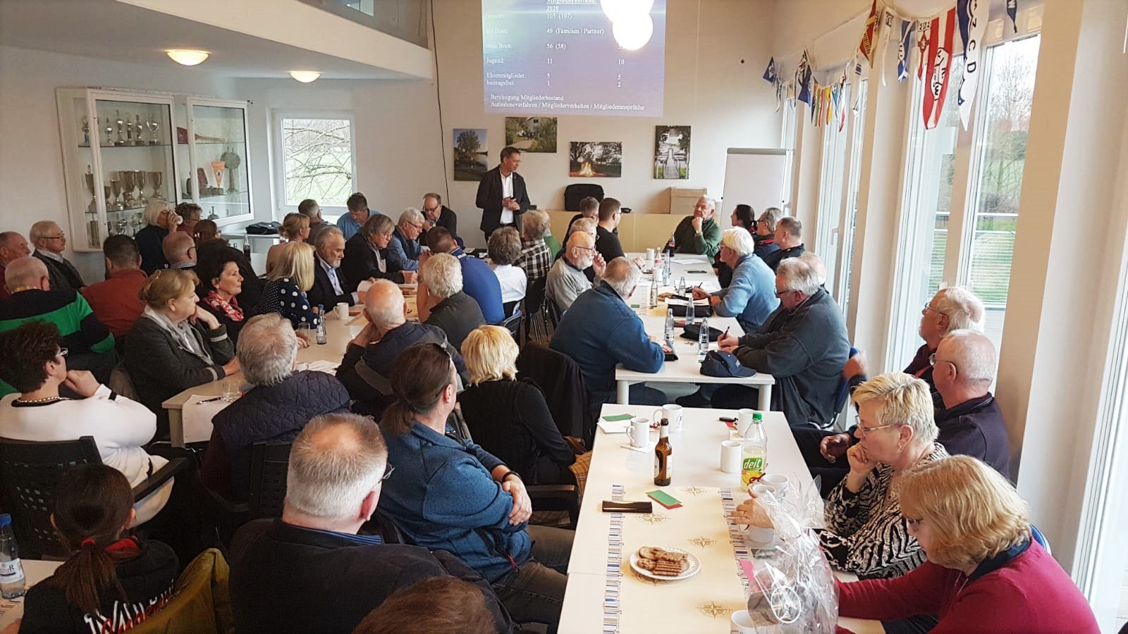 (RA-St.) Was länge währt, wird gut. Diese Weisheit traf in diesem Jahr auch auf unsere Mitgliederversammlung zu, denn gute drei Stunden währte unsere harmonische Versammlung. Zudem kamen in diesem Jahr so viele *Mitglieder wie schon lange nicht mehr – sicher auch, um dem in Teilen neu zusammengesetzten Vorstand ohne jede Gegenstimme das Vertrauen auszusprechen. Aber natürlich könnte auch unsere interessante Tagesordnung ihren Teil dazu beigetragen haben. Zunächst die wichtigsten *Formalien: Wiedergewählt wurden neben unserem ersten Vorsitzenden Matthias Albrecht und unserem 2. Mann an der Spitze, Axel Hartmann, auch Schriftführer und Pressewart Ralph Arndt-Stricker sowie die Clubhauskoordinatorin Petra Ruschmeier und unser für Versicherungen und Umwelt zuständige Norbert Niehus. In ihre neue Funktion als Sportwartin wurde unsere kommissarische Jugendwartin Marina Schweckendiek gewählt und als neuen Schatzmeister bestätigte die Versammlung Christoph Rieper. Aus unserem Vorstand verabschiedet wurden Heinz-Dieter Zahn als Schatzmeister und unser Hafenmeister Rudi Ruschmeier. Bis wir einen neuen Hafenmeister gefunden haben, übernehmen diese Position unsere beiden Vorsitzenden (Matthias die Administration und Axel die Technik) und teilen sich so die Arbeit.