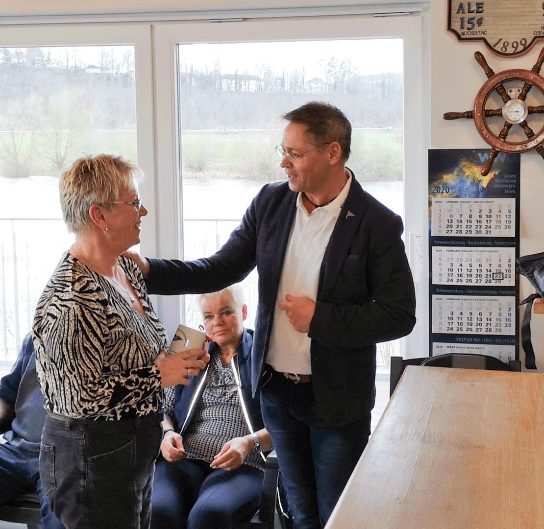 Natürlich galt es auch in diesem Jahr wieder, vielen Mitgliedern „danke“ zu sagen. Geehrt wurden: Volker Grentz für 10 Jahre Mitgliedschaft, Michael Jülke für 20 Jahre und Frank Fricke für 30 Jahre im MCH. Als Dankeschön für ihre langjährige Arbeit als Schatzmeister und als Hafenmeister erhielten Dieter und Rudi ein kleines Geschenkpaket, in dem unter anderem erstmals auch ein Thermobecher, mit MCH-Insignien darauf, enthalten war. Dieser Becher kann käuflich nicht erworben werden – den muss man sich verdienen ;). Als kleines Dankeschön für große Leistungen im Clubheim und im Hafenhaus erhielten Sabine Gaudlitz, Ulrike Massante, Sabine Megerle, Matthias Gaudlitz und Reinhard Kirsten als Erste den brandneuen MCH-Kaffeebecher. Auch hier können wir gar nicht genug betonen, wie wichtig diese Hilfe durch Euch war. Ihr habt vieles erst möglich gemacht und wir können nur hoffen, dass Euer Beispiel Schule macht. Doch auch vorstandsintern haben wir eine kleine Ehrung ausgesprochen: Matthias und Axel erhielten aus Petras zarten Händen eine kleine Würdigung der Vorstandskolleginnen und –Kollegen für ihren unermüdlichen Einsatz für unseren Verein. Zum Wohl!