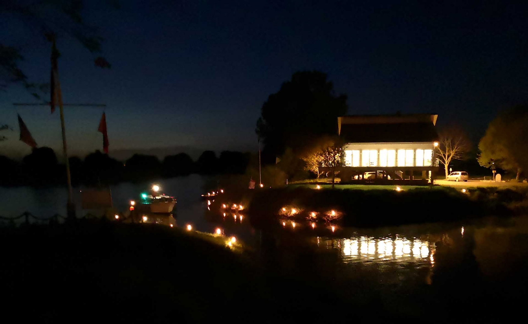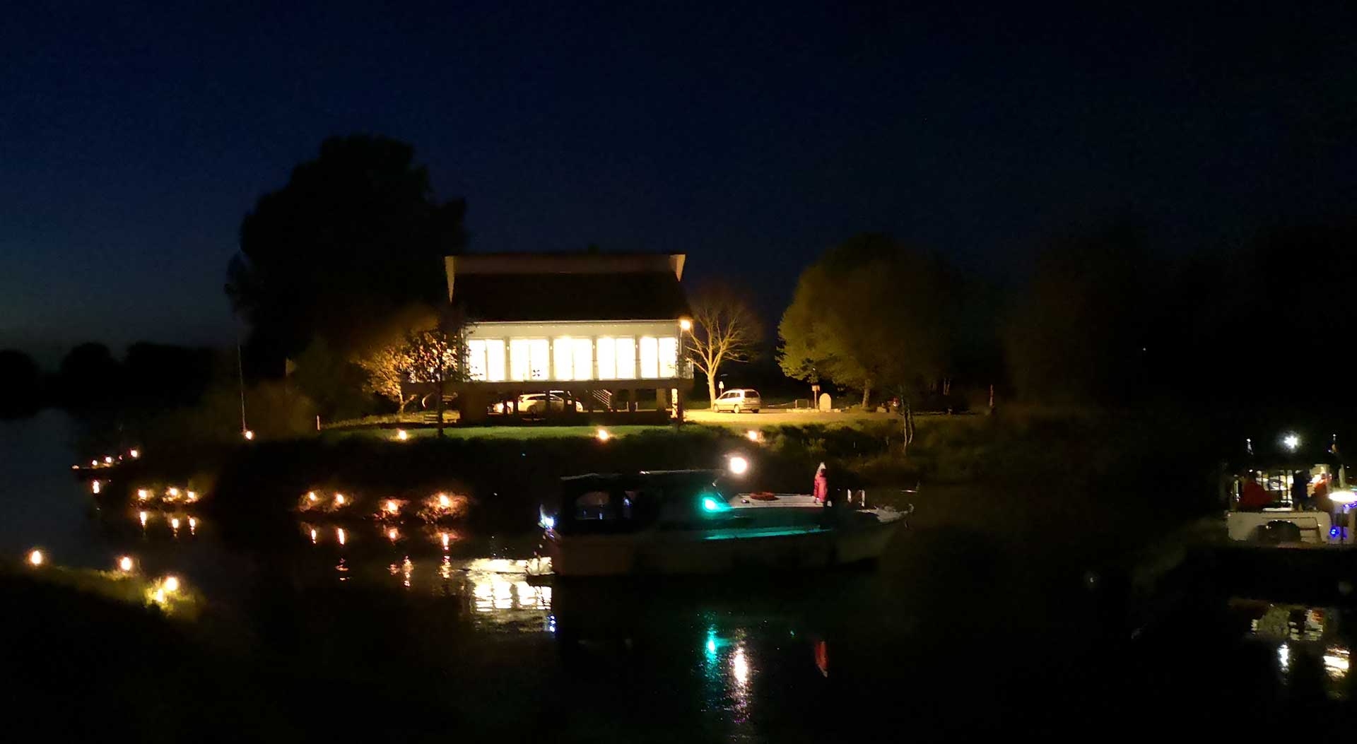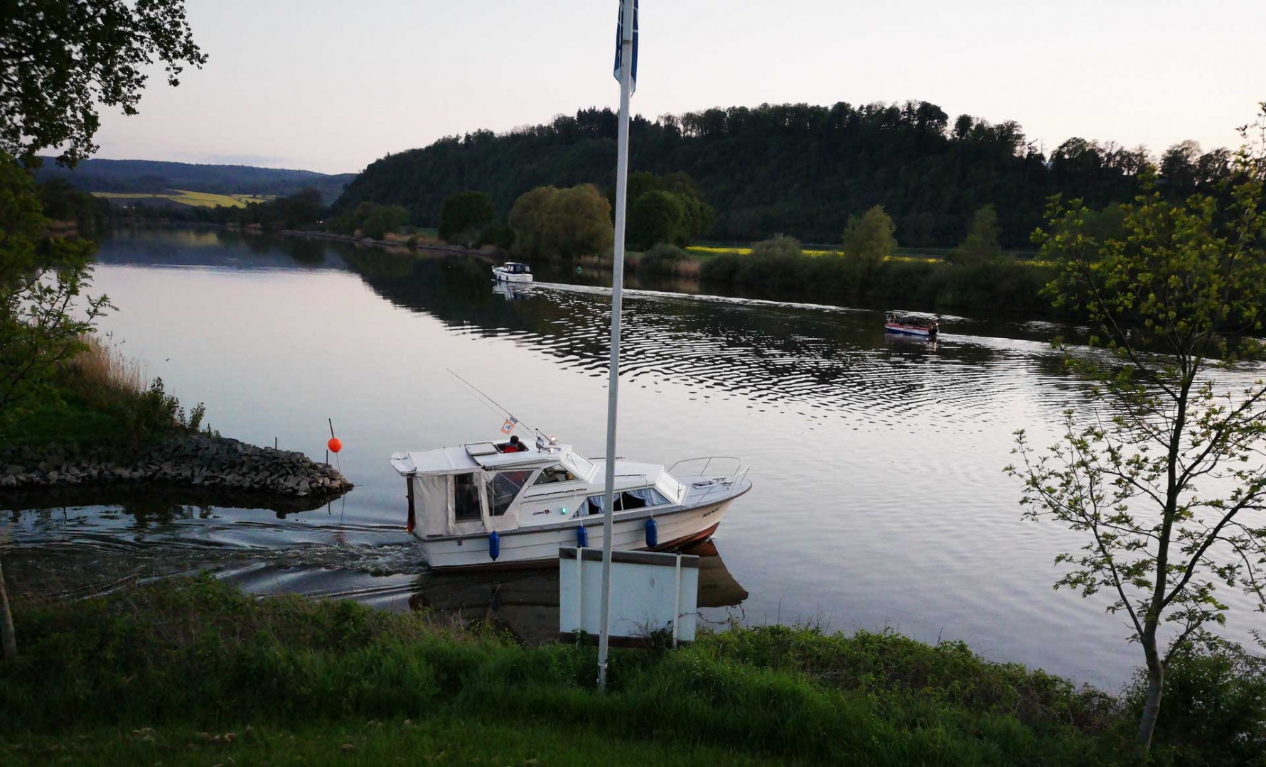 Ein echter Höhepunkt war am späteren Abend die Hafenbeleuchtung, die Hafenmeister Rudi Ruschmeier meisterlich inszeniert hatte. Auch die Gäste der „Flotten Weser“ und die Schiffsbesatzungen der „Hameln“ und der „Holzminden“ zeigten sich von der festlichen Illumination des MCH-Hafens beeindruckt. Wir begleiteten die Schiffe der „Flotten Weser“ ab Bodenwerder und erstmals wurde die Schiffseskorte des MCH (endlich einmal) von einer Frau angeführt: Der Bootsführerin der „Annamaru“. Wir sind im 21. Jahrhundert angekommen!