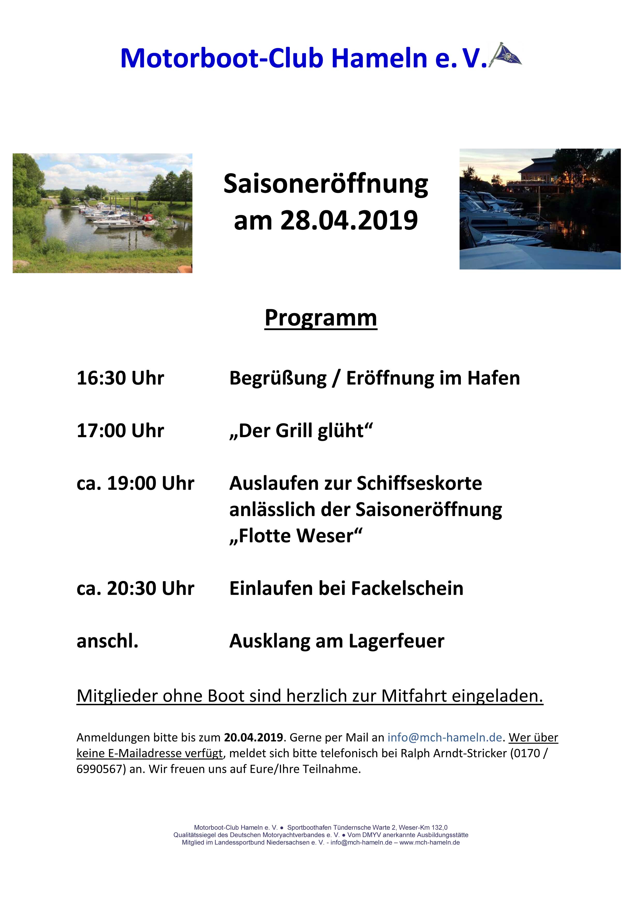 (RA-St.) Bei traumhaften Wetter konnten wir mit unseren Mitgliedern und Gästen einen gelungenen Einstand in die Saison feiern. Der Grill glühte – wie auch die Gesichter in der Frühlingssonne und bevor wir unsere Bootseskorte für die Saisoneröffnungsfahrt der „Flotten Weser“ auf die Reise schickten, verbrachten wir einen entspannten Nachmittag auf der Sonnenterrasse unseres Clubheims.