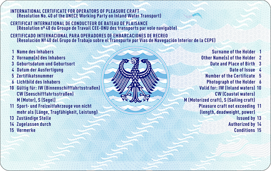 Amtlich vorgeschrieben auf allen Binnenschifffahrtsstraßen zum Führen von Sportbooten mit einer Länge von weniger als 20 m (ohne Ruder und Bugspriet), die mit einer Antriebsmaschine von mehr als 11,03 kW (15 PS, Verbrenner) bzw. 7,5 kW (10,2 PS, Elektro) ausgestattet sind.